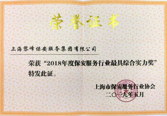 2018年10月 榮獲上海市公安局頒發(fā)的“保安服務行業(yè)綜合實力企業(yè)獎”