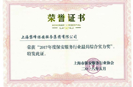 2017年 被上海市公安局評為2016年度保安服務行業(yè)業(yè)務發(fā)展優(yōu)勝獎
