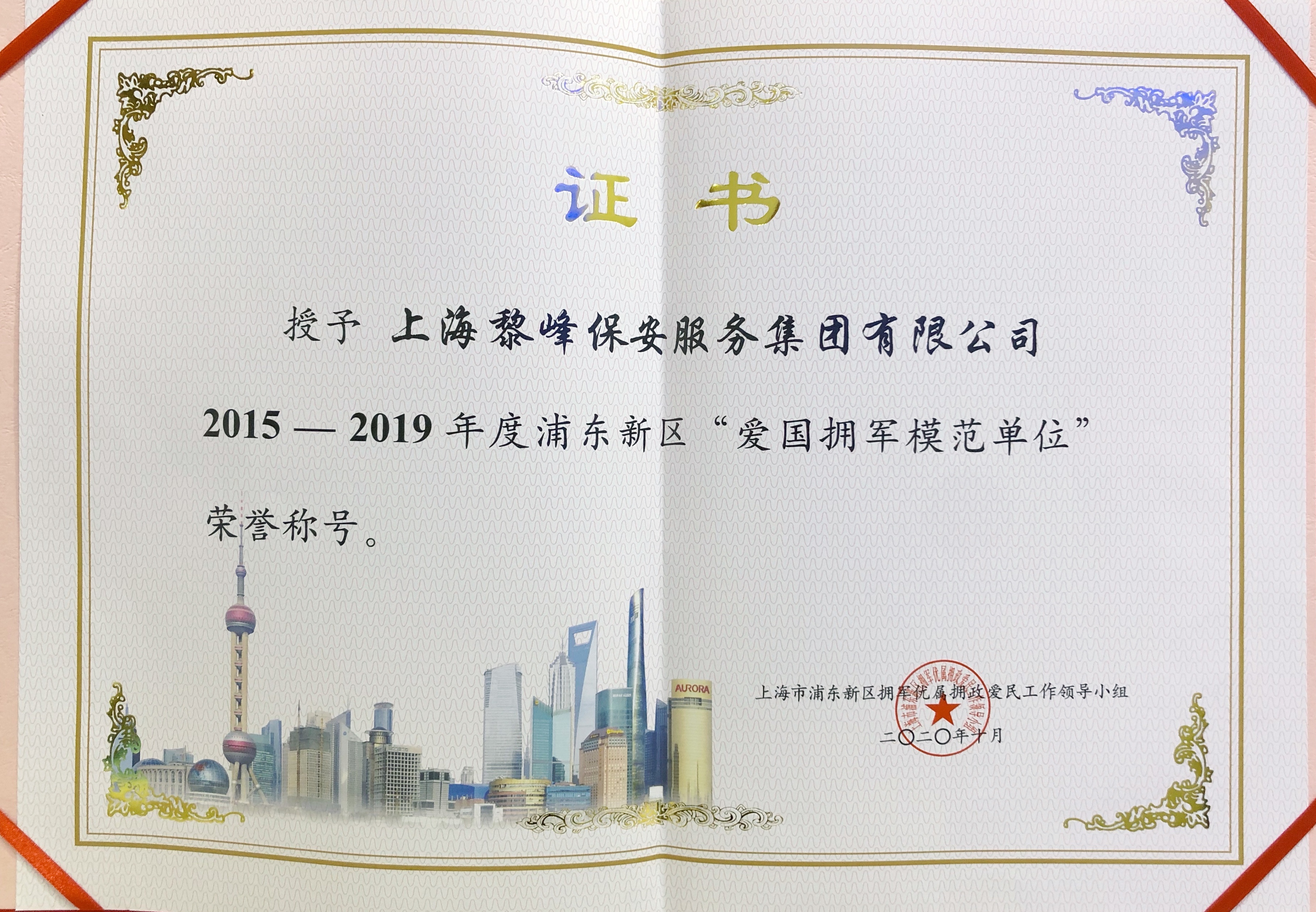 2015年 獲得上海市浦東新區(qū)“文明單位”稱號的首家保安服務公司